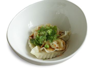 Dumplings mixed with house special chili oil based sauce, top with green onion and cilantro